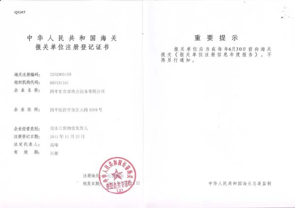海關(guān)報(bào)關(guān)單位注冊登記證書